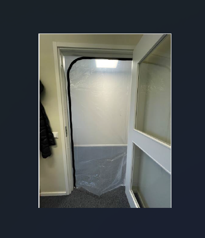 Dammskyddsdörr i kraftig PVC-plast. Enkel att sätta upp med klammer eller tejp. Efter användning torka av vik ihop och använd nästa gång.