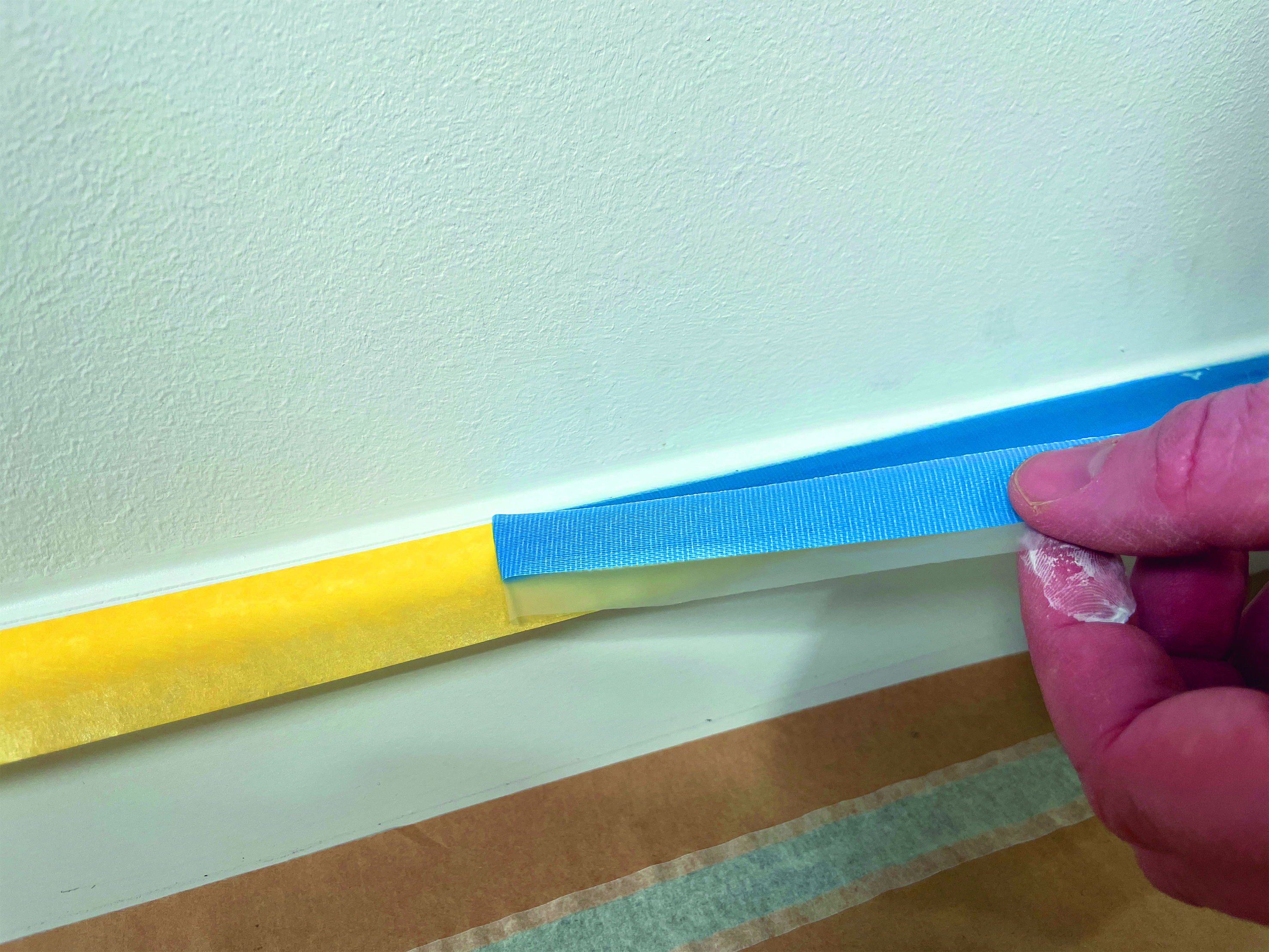 När du skall måla dörrfoder, golv eller taklister maskerar du väggen/taket/tapeten med denna lätthäftandetejpen