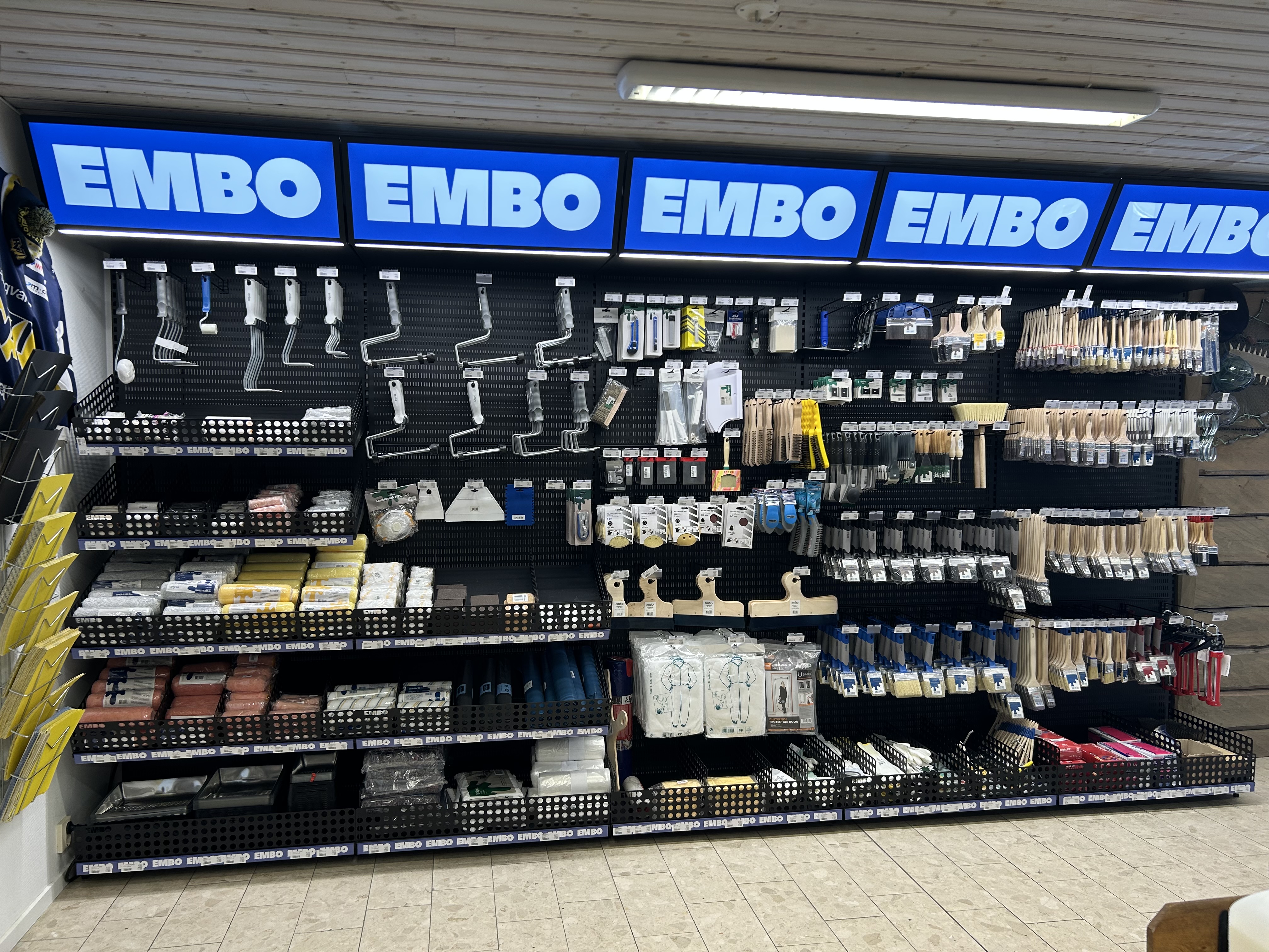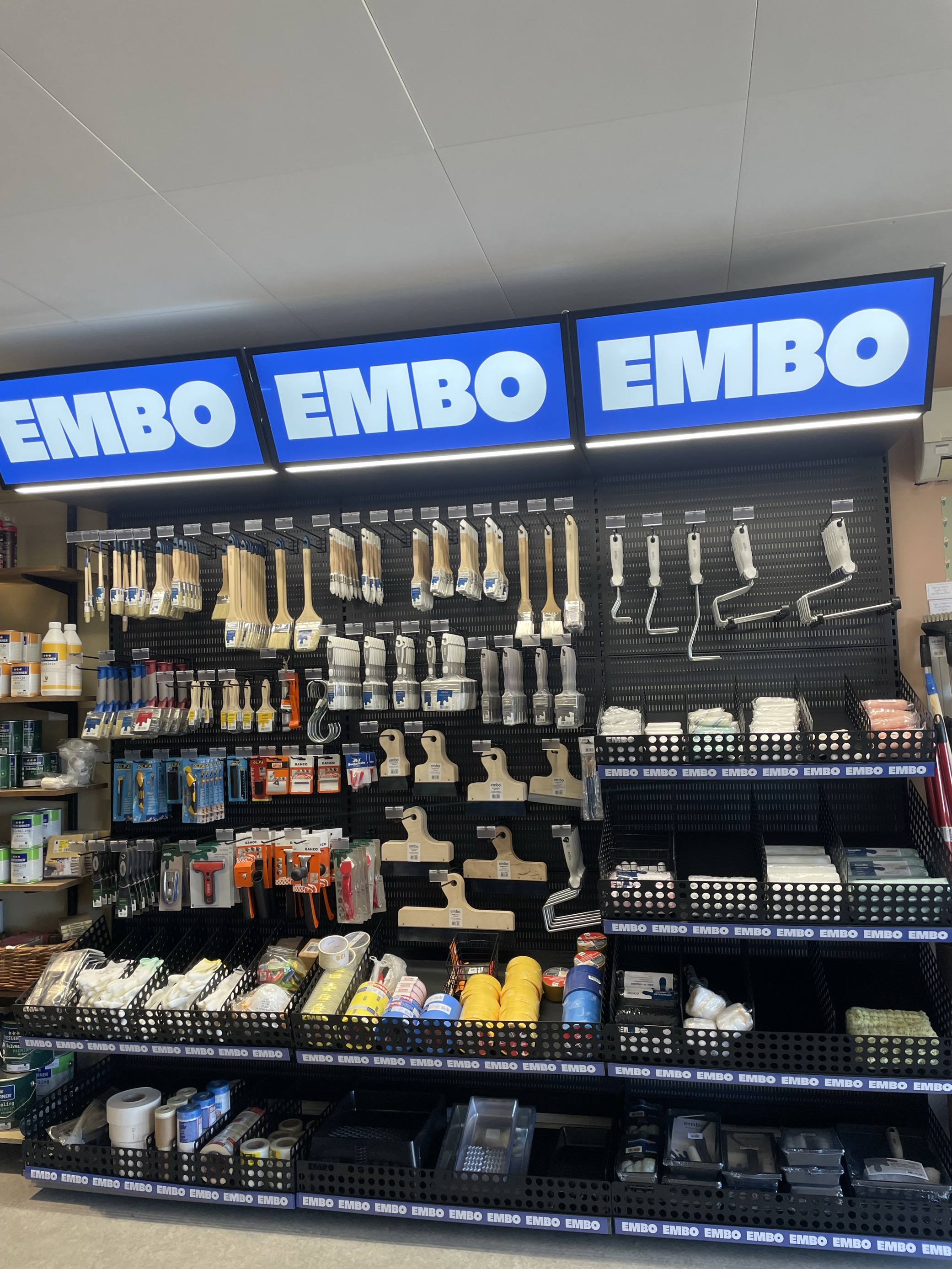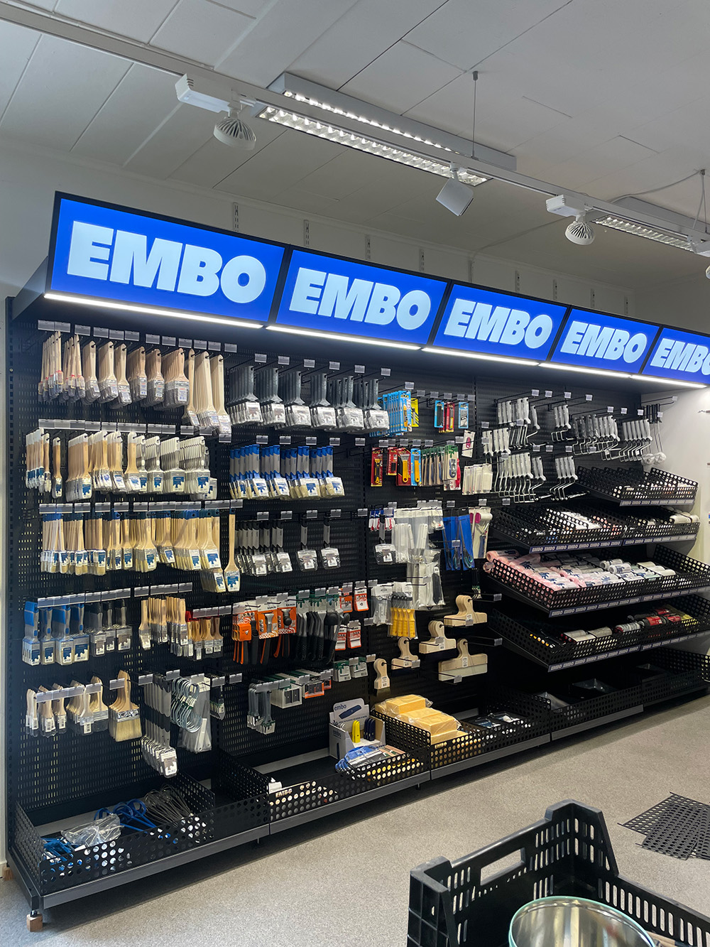 Den nya visuella identitet sätter tonen för hur Embo upplevs i butiksmiljön. Genom konceptets tydliga färgkoder, produktnamn och symboler blir det enklare att navigera i sortimentet, oavsett om du är ny i butiken, besöker den ofta eller har den som arbetsplats.
