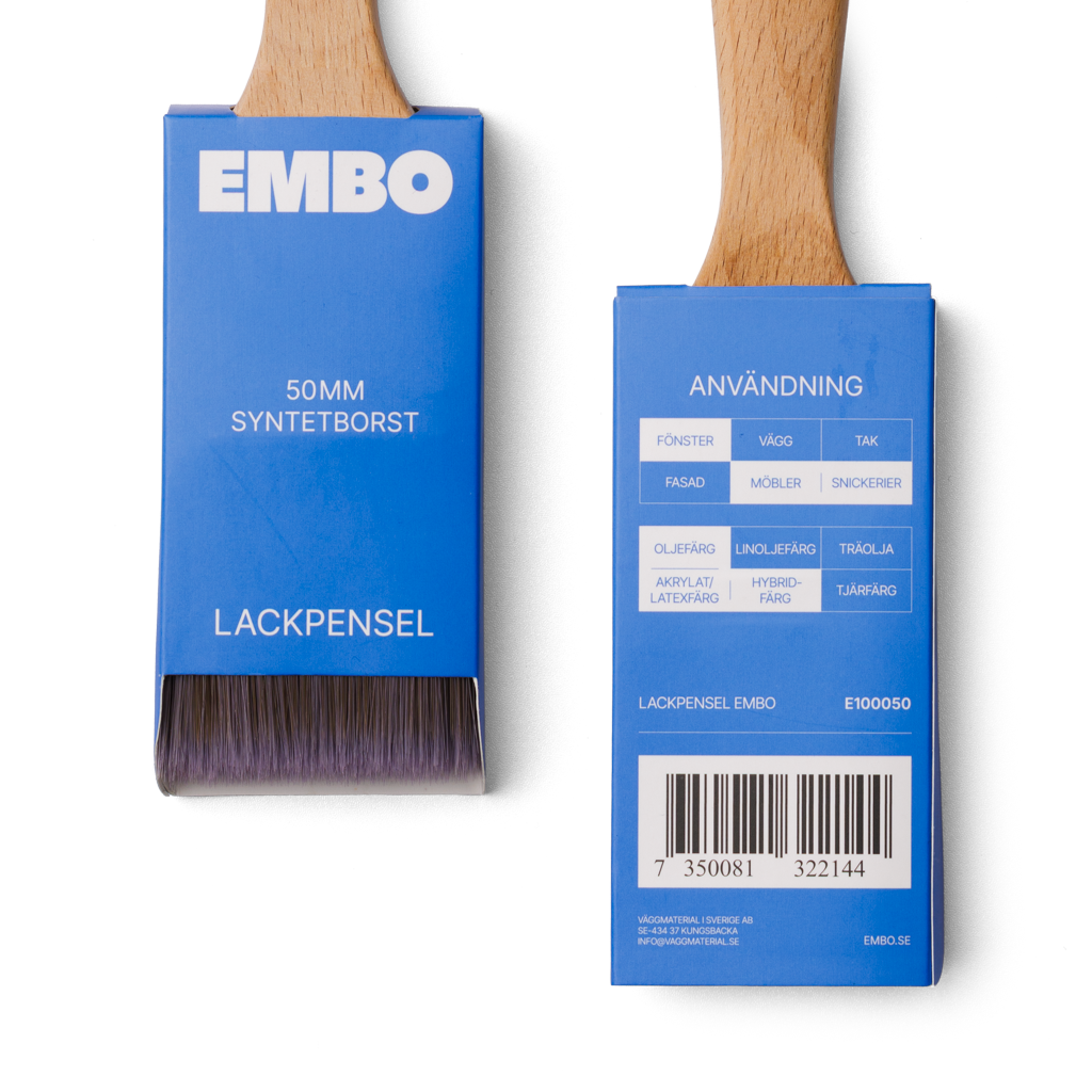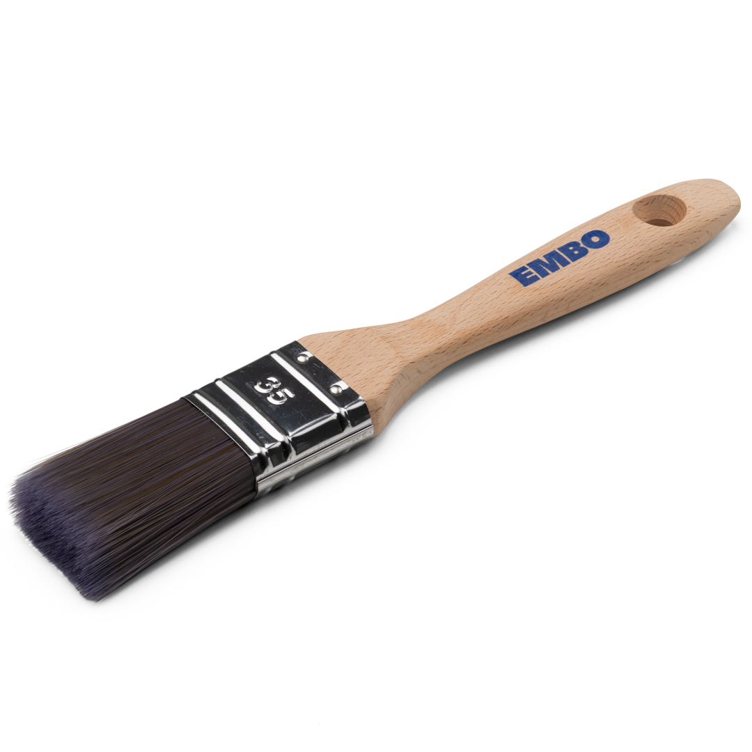 Ergonomiskt träskaft. God färgupptagning och täckförmåga, mycket slitstark. Syntetborst utvecklad för vattenbaserad färg.