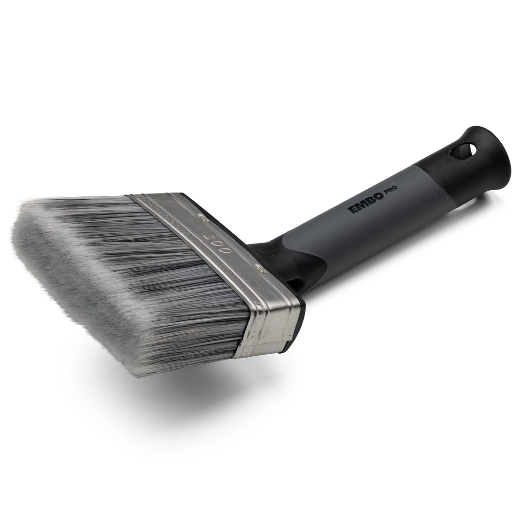 Lämplig för slamfärg. Penseln kan enkelt hängas på burken. Vinklat skaft som kan sättas på förlängningsskaft.
