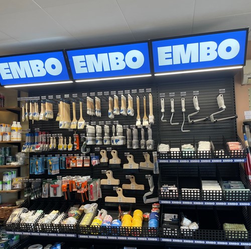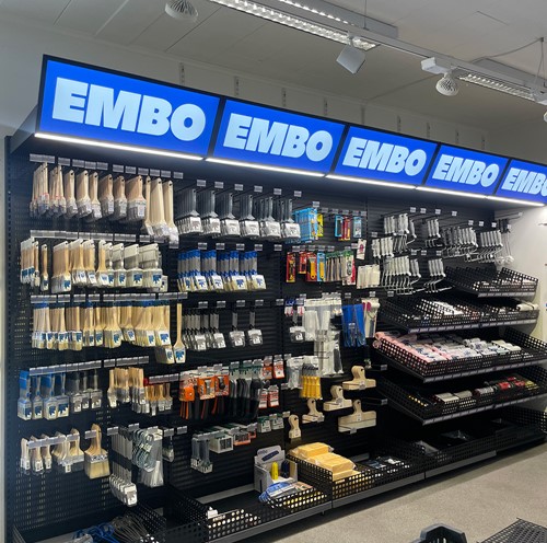 Den nya visuella identitet sätter tonen för hur Embo upplevs i butiksmiljön. Genom konceptets tydliga färgkoder, produktnamn och symboler blir det enklare att navigera i sortimentet, oavsett om du är ny i butiken, besöker den ofta eller har den som arbetsplats.